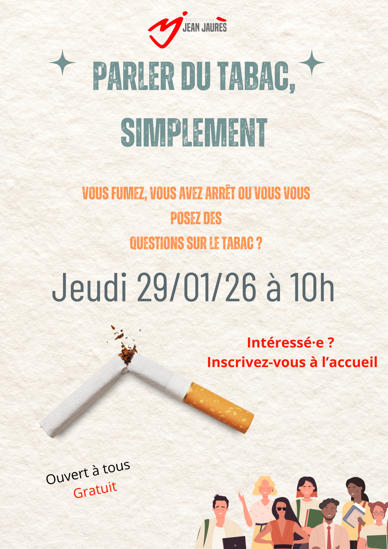 Le jeudi 29 janvier 2026 à 10h (durée : 1h30), nous vous proposons une séance d’information et de discussion interactive sur le tabagisme, animée par le FARES.